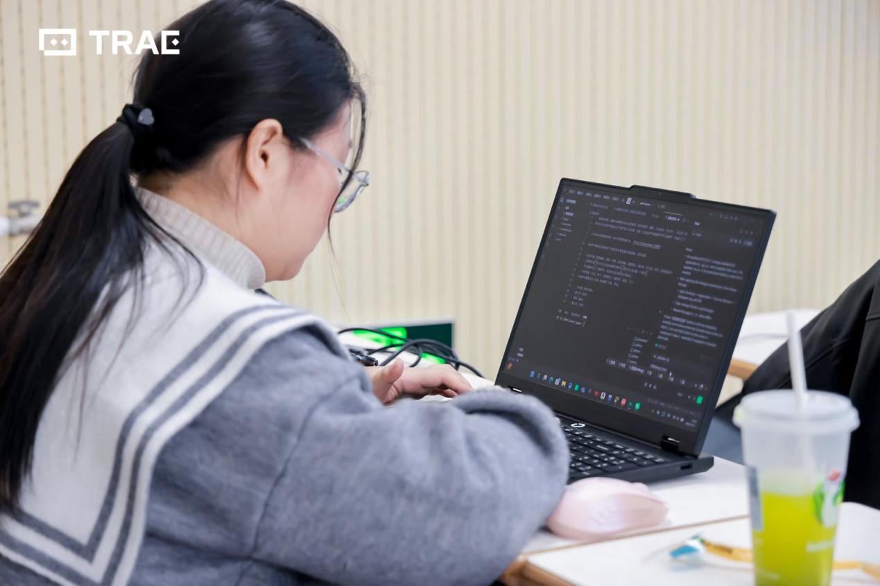 在下午的“闪电开发”环节中,同学们与TRAE技术专家积极互动,从需求分析到代码实现,全程一对一深入交流,有效突破开发难点,推动项目高效推进。
