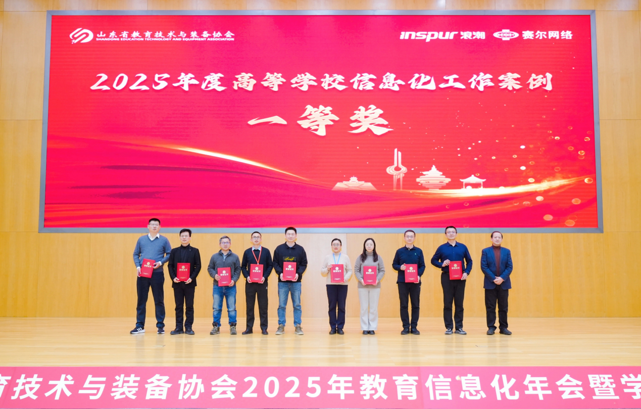 12月26-28日,山东省教育技术与装备协会在济南举办“2025 年教育信息化年会暨学术研讨会”,全省教育系统信息化部门负责人共300余人参加会议。会上发布了2025年高校信息化工作案例评审结果,数智化支撑研究院提报的《宣传、教育、实践“三融合”驱动师生网络安全素养、能力“双提升”》网络安全文化建构实践获得网络与数据安全类工作案例一等奖第一名。