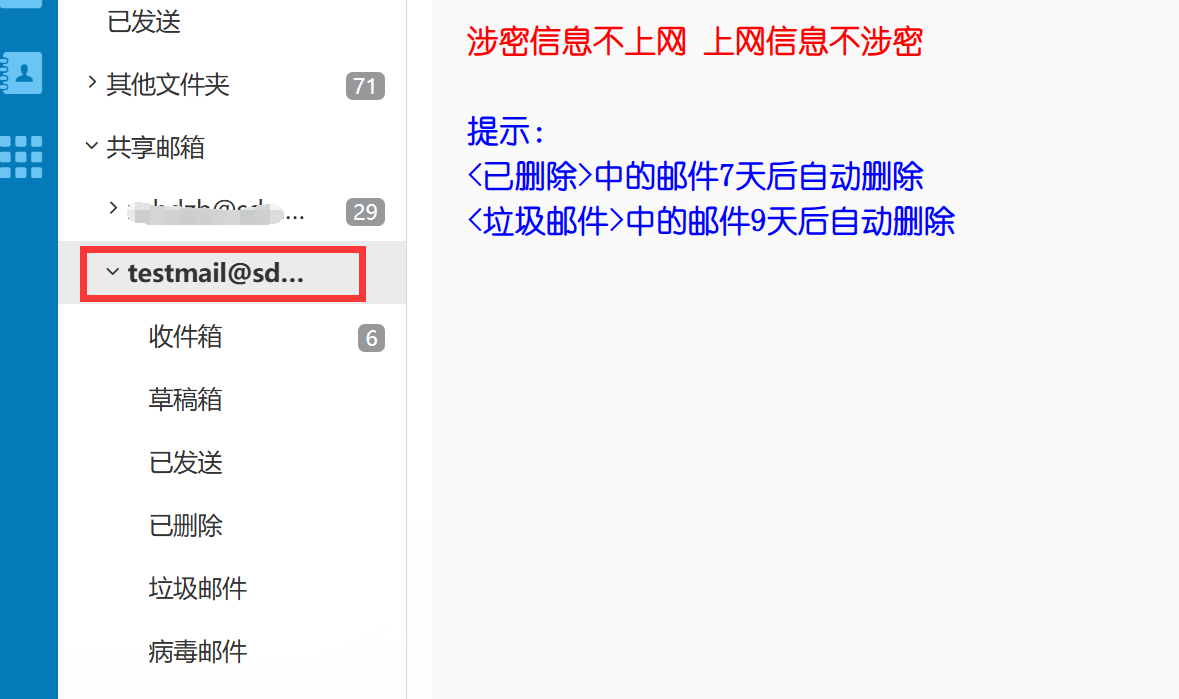 办公邮箱设置完成共享之后,共享人登录个人邮箱账号后可以看到被共享的办公邮箱的账号